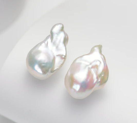 Cultured Freshwater Baroque Pearl (above 15mm), Aurora colorful Lever back Drop Earrings with in S925 Sliver