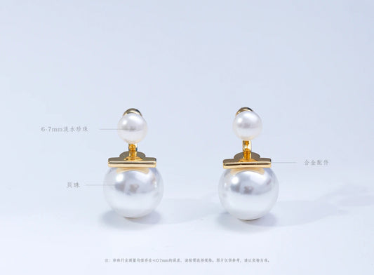 Natural Freshwater Small Non-bead Pearl Earrings 5-6mm + Large shell Pearl, Elegant Versatile Minimalist Design, Fashionable and Exquisite