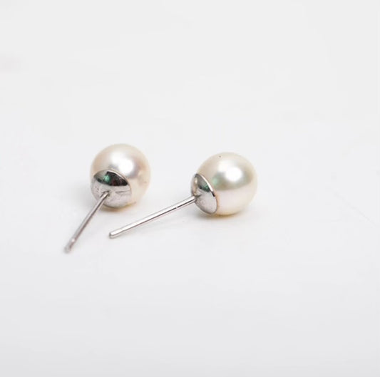 Natural Japanese Akoya Sea Water Pearl Stud Earrings (7-8mm)