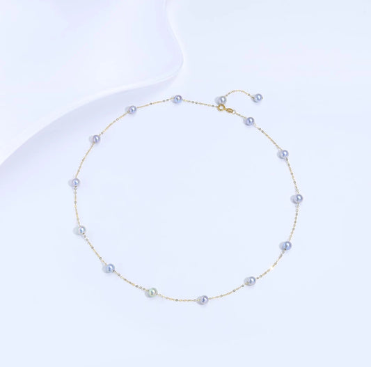 18K Gold Madama Akoya Starry Sky Silver Blue Gray Sea Water Pearl Necklace 6-7mm Fairy Temperament Versatile