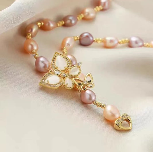 Natural Freshwater Pearl Necklace, Light Luxury Fashion Clavicle Chain with Multi-Color Pendant