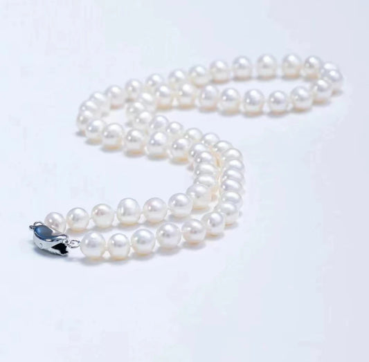 8.5-9.5mm Freshwater Non-bead cultured pearl collar necklace(include Guild gem Lab certified)