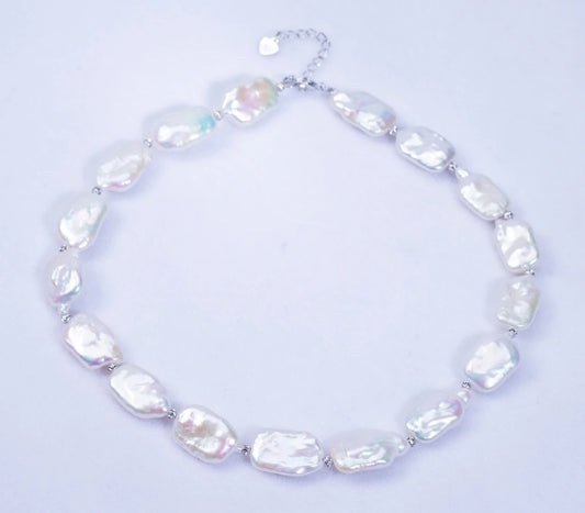Rectangular aurora Baroque Freshwater Pearl(11-14mm) Statement Necklace, 18"
