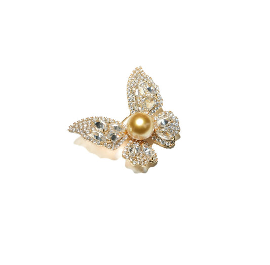 Golden Flower Brooch with Cultured Seawater Tahitian Pearl