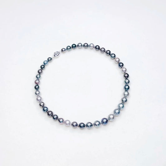 18K Gold Madama Akoya Starry Sky Silver Blue Gray Sea Water Pearl Necklace 6-7mm Fairy Temperament Versatile