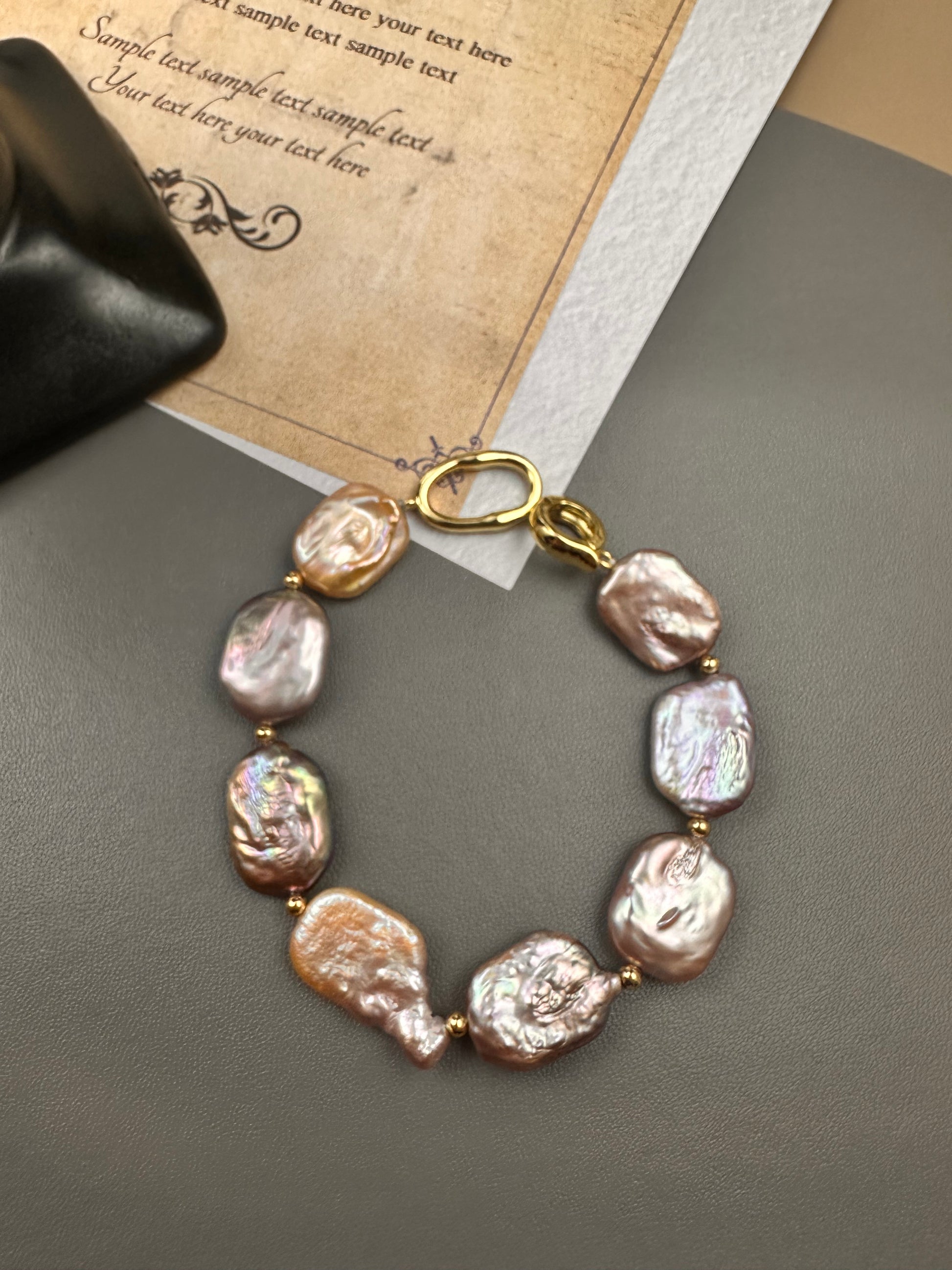 Cultured purple aurora Baroque Freshwater Purple Pearl (11-14mm) Bracelet