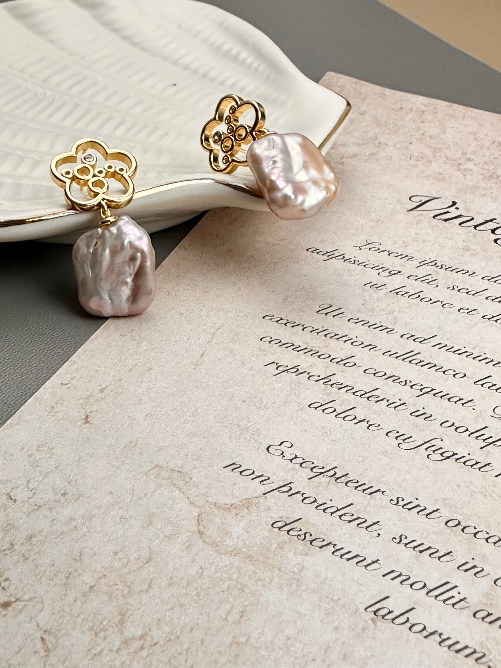 Freshwater Aurora Iridescent Purple Pearl Square Baroque Stud Earrings A57 (Variety Shipped, One Pair)"