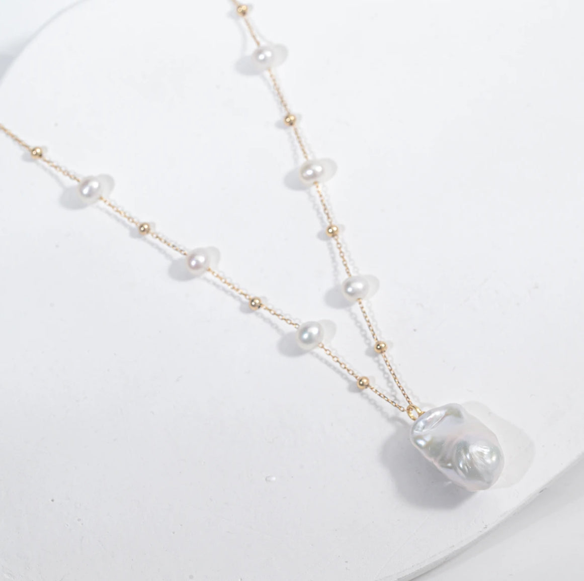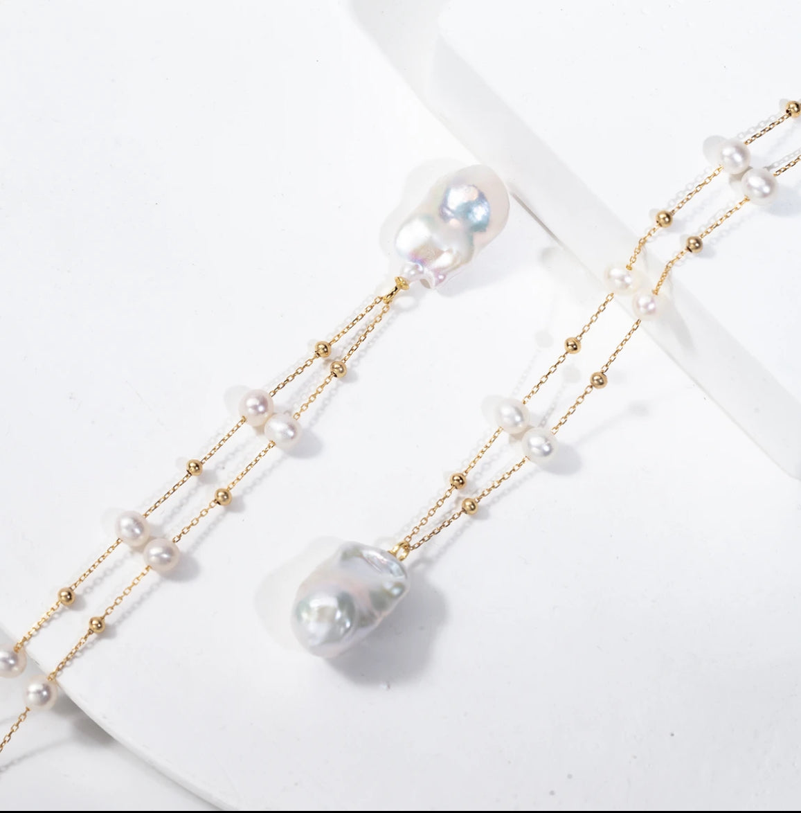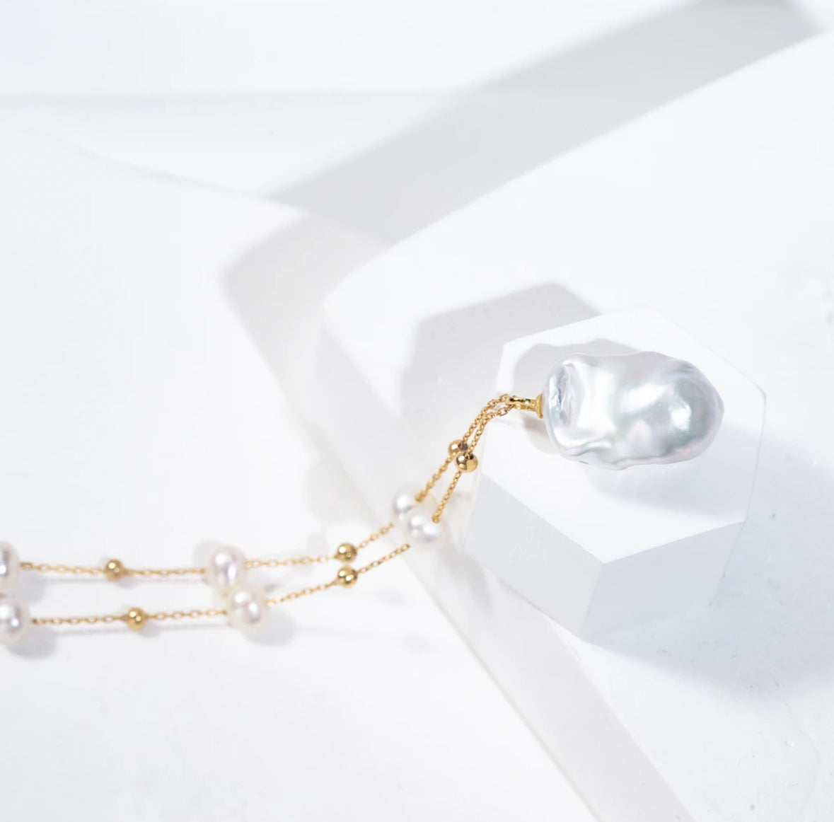 Full S925 Silver Natural Freshwater Pearl Starry Sky Baroque 2025 Spring/Summer Necklace