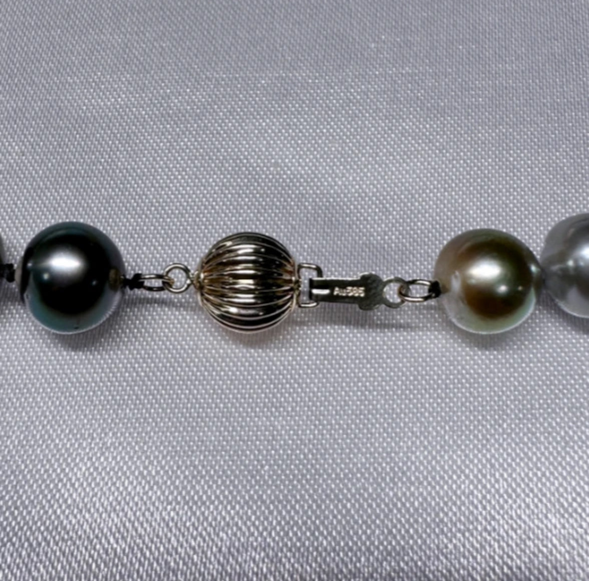 Crafted from 3A-grade lustrous Tahitian pearls,Strong Luster, Moderate Blemishes,emitting captivating radiance. Fashionable & Elegant.Timeless and Versatile with Luxurious PearlsThese natural pearls undergo no coloring or enhancements, showcasing the authentic hues native to Tahitian pearls—vibrant blacks with overtones, depicting the mysterious and elegant essence of Tahitian pearls.