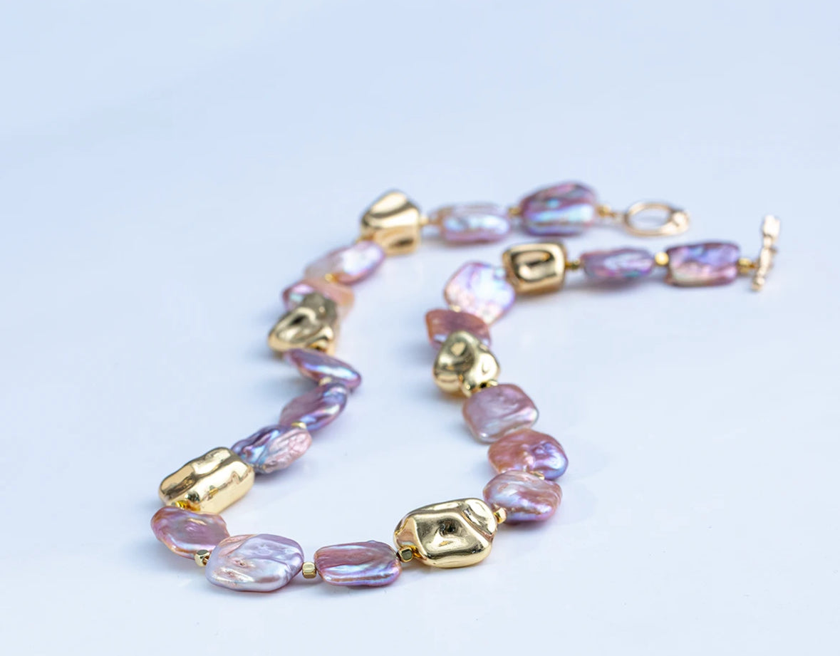 Design-Style Freshwater purple aurora Baroque "Golden Years' Necklace 15-20mm [Assorted Styles Shipped, 1 Piece]